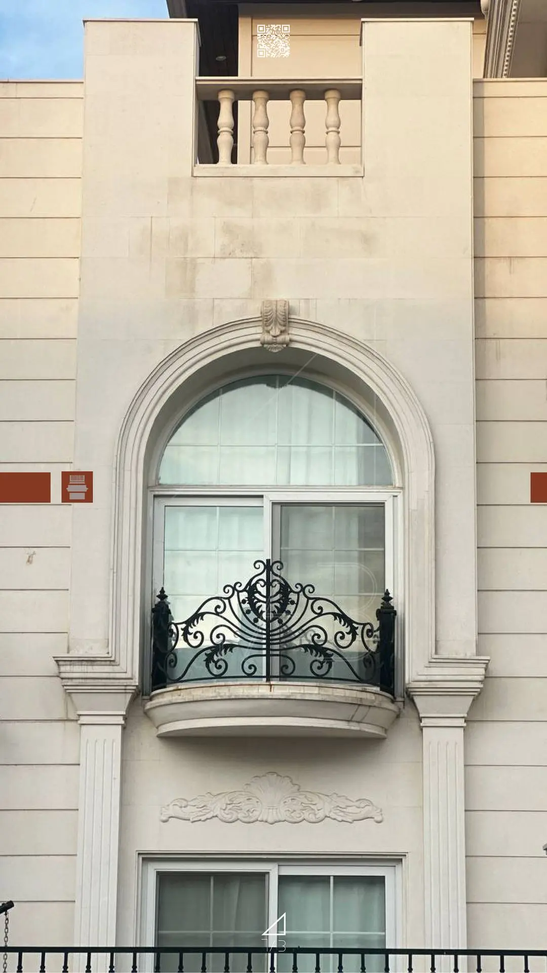 railings are made of intricately designed wrought iron, adding a touch of sophistication and security.